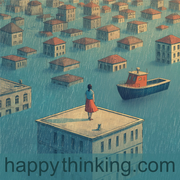Let’s imagine that someone called Tania lives in an apartment near a river. Unfortunately, a rare calamity strikes her neighbourhood: the river has burst its banks, and the town is increasingly flooded.